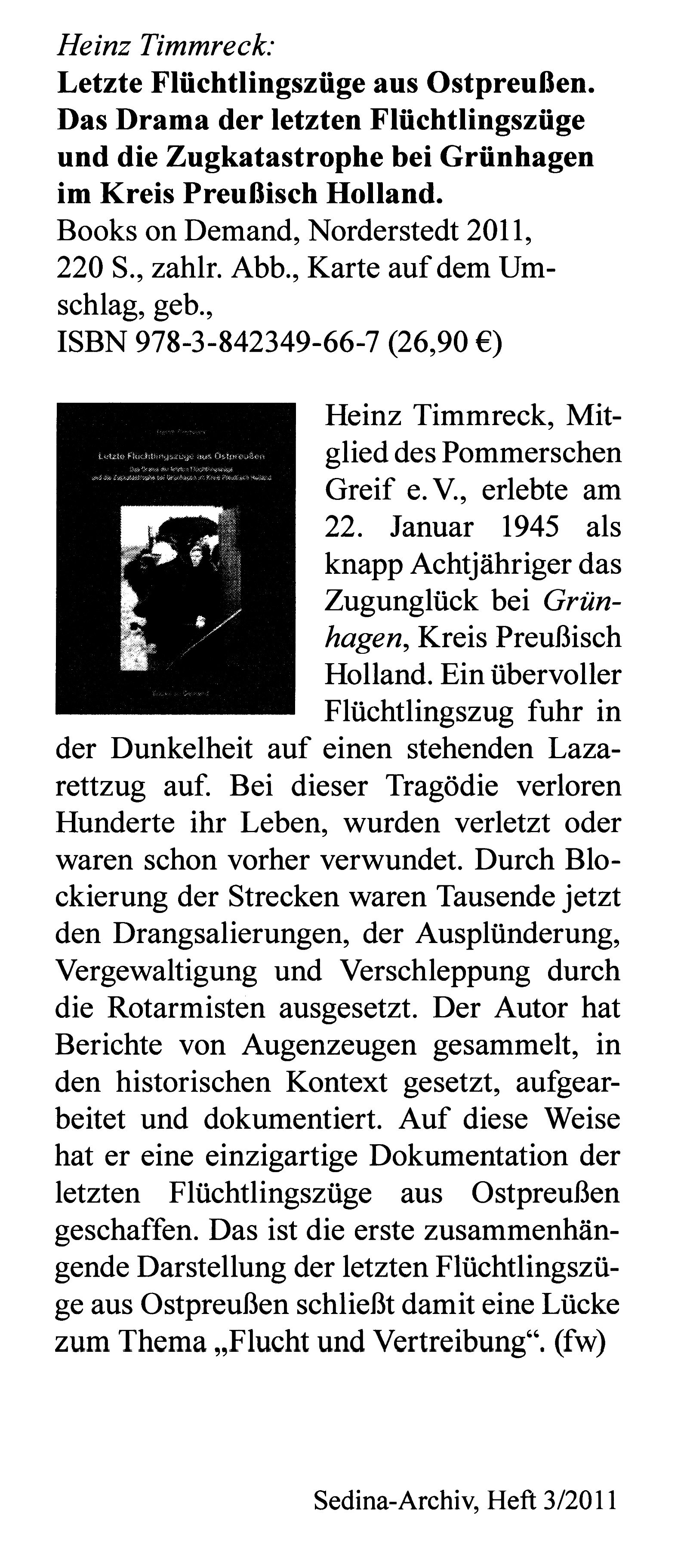 Sedina-Archiv; Mitteilungsblatt des Pommerschen Greif e.V.