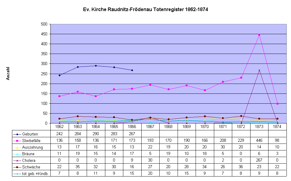 bis 1872 leicht erhöht, um wegen der Choleratoten im Jahr 1873 hochzuschnellen